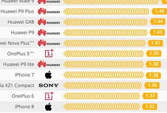 Los principales ha sido recopilados en la siguiente infografía creada por Statista en la que se distingue de que los primeros lugares pertenecen a móviles chinos comenzando por el Xiaomi Mi A1.