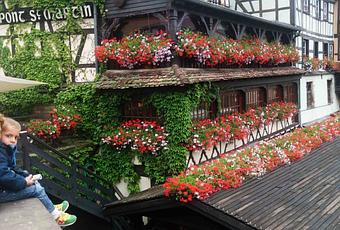 Nos adentramos en la Petite France, el barrio más típico, pintoresco y mejor conservado de la ciudad. En este lugar, antiguamente, era morada de curtidores y pescaderos. Nos fijamos en las casas autóctonas alsacianas de los siglos XVI y XVII, construidas casi todas con entramados de madera, con sus tejados inclinados para secar las pieles antiguamente, dan la sensación de típico pueblo de cuento de navidad. Rodeados de estas preciosas casitas, calles adoquinadas, restaurantes, tiendas de souvenirs y muchos rincones bonitos para perderte, llegamos al Puente Saint Martin. Aquí pudimos ver perfectamente el salto de agua que impulsaba los molinos y una de las esclusas que todavía hoy están en funcionamiento.