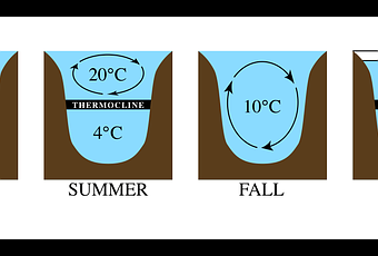 La estratificación termina tiene lugar en los lagos y lagunas de regiones templadas copn cambios perceptibles en la temperatura debido a las estaciones.