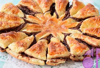 La estrella de hojaldre y chocolate se hizo muy popular ya el año pasado e incluso formaba parte de un anuncio de la tv. La hice el año pasado y tan rápido como la hice desaparecio y fue imposible hacer las fotos. En esta ocasión me he recreado haciendo el paso a paso y la he blindado una vez hecha para poder hacerle la foto una vez horneada.
