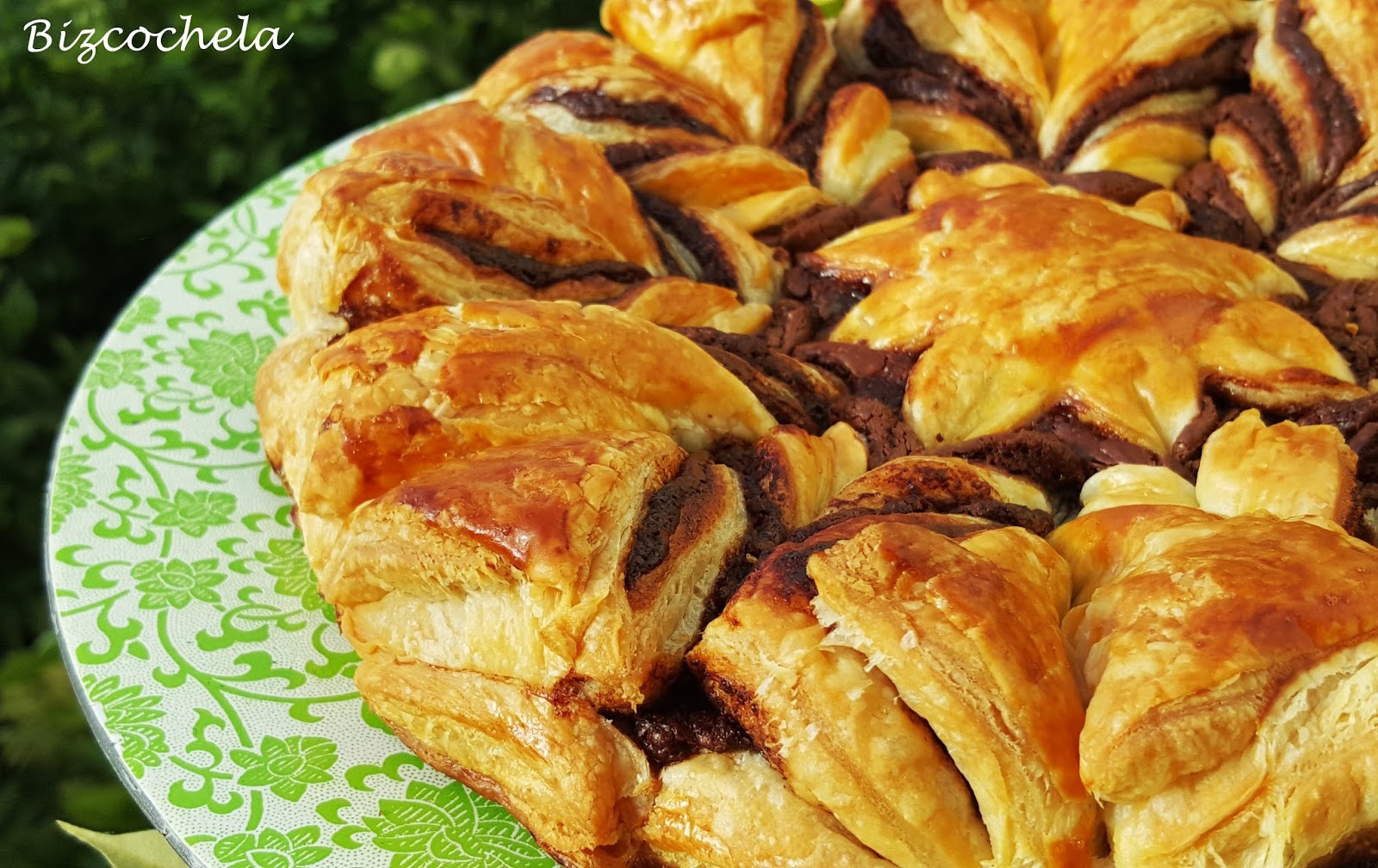 Esta semana la vamos a finalizar con una ESTRELLA DE HOJALDRE Y CHOCOLATE, una de esas recetas superultramegafáciles, que se preparan en un santiamén y que os aseguro que triunfa, allá donde la llevéis.