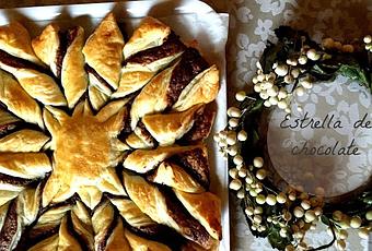 Teníamos comida en casa de unos amigos y junto con el postre de Carmen, llevé esta estrella de chocolate y hojaldre, que también es muy fácil.