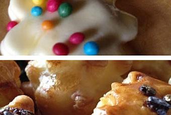 Elaboración: Precalentamos el horno a 200º. Extendemos la masa, la vamos cortando con las formas que queramos. Colocamos un poco de relleno y otra capa de la masa según la forma dada. Ponemos en la bandeja de horno sobre papel vegetal. Batimos el huevo y con el pincel untamos las figuras con el huevo y esparcimos o unpoco de azúcar o las bolitas .