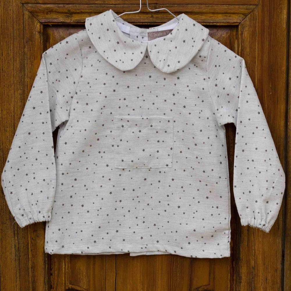 Varias casas han unido la pata de gallo con la estrellita. Las hay de varios colores: rosa, verde agua y gris.Paloma de la O, tiene varias colecciones con las estrellitas,Cocote, Ancar, El tocador de Oliva....etc...etc.Hoy os hago este post porque muchas mamis os gusta combinar a vuestros peques con las mismas telas aunque sean diferentes estilos y/o edades.Así que eso de coincidir las telas está genial!!! Porque puede combinar como quieras de las marcas que quieras y colores variados!!Yupi!!!!CAMISA DE PALOMA DE LA O(Caperú Kids)