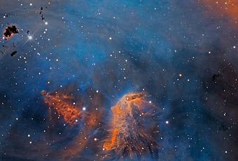 Junto con el gas brillante irregular y las complejas regiones de polvo reflectante, estas estrellas masivas y energéticas forman el cúmulo abierto llamado Collinder 249. Este hermoso paisaje estelar abarca unos 60 años luz, y la distancia estimada de la nebulosa desde la Tierra es de 6.000 años luz.