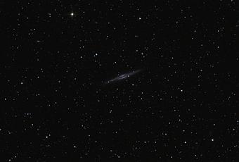 A ti te dedico esta fotografía de la GALAXIA NGC 891. Se trata de un interesante objeto que "descubrimos" (David y yo) el miercoles pasado, gracias al modo "Tour" del mando NexStar. Se trata de una galaxia espiral situada a 9,8 megaparsecs (alrededor de 32 millones de años luz) de la Vía Láctea, en la constelación de Andrómeda. Especialmente bonita por presentarse prácticamente de canto.
