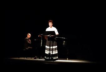 Foto ©Web Teatro BergidumLlevaba tiempo sin escuchar a la soprano ferrolana, muy solicitada para estrenos gracias a su poderío vocal basado en un trabajo meticuloso y versatilidad, la misma que le trajo hasta la capital de El Bierzo para regalarnos el "Tributo a Gil y Carrasco" opus 64, en homenaje al bicentario de su nacimiento, siete lieder sobre poemas de Enrique Gil y Carrasco del compositor local y pianista Manuel Alejandre Prada. No es accesorio titular esta obra de "lied" puesto que el diálogo y protagonismo de piano y voz marcan esta obra de dificultades extremas para el registro de soprano, con poemas no excesivamente musicales a los que Alejandre intenta sacar más la expresión que la lírica propiamente dicha.