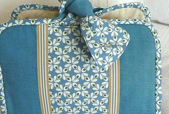 Elegí las telas en tonos azules y beig, que es una combinación que me encanta y la cinta que encontré a juego fué también en estos tonos.
