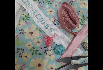 Voy sacando materiales para ir dándoles usos varios, en ésta ocasión he sacado un retalito de algodón estampado, un trocito de cinta para punto de cruz, un resto de acolchado de algodón, un trozo de bies de raso, unos hilos de bordar (tengo muchos) y todo ello lo he convertido en un estuche guardamedias
