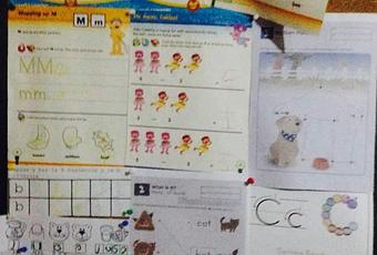 Para estos murales hemos trabajado con la letras C,M, K, B, O, D, E, hemos utilizado Letrilandia, Letramania 1, Activity Village, unos libitos de vacaciones en ingles, material de Confessions of a homeschoolers, varios Cuadernos de actividades de Kumon y unos libritos de vacaciones en ingles.