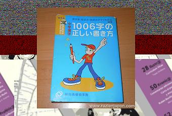 Es un pequeño libro que contiene los primeros 1006 kanjis, o lo que es lo mismo, los kanjis que se estudian en primaria en un colegio japonés. el nombre es "1006字の正しい書き方" (La forma correcta de escribir 1006 kanji). Aunque el libro originalmente valia 600Yens (que pone por detras) yo me lo encontré en una libreria perdida por la misera cantidad de 105Yens (1€). Están divididos por año de primaria. O sea que los últimos 181 son los que se aprenden en 6º de primaria, o sea exactamente los que entran en el Kanken de nivel 5 que estoy estudiando ahora. El librito te pone como se escribe cada kanji, como se llaman sus radicales, y una lista de palabras de ejemplo muy útiles con cada uno. Realmente encontré un tesoro secreto en aquella libreria tokyota...
