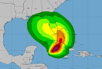 A las seis de esta mañana, su región central fue estimada en los 18.5 grados de latitud Norte y los 84.6 grados de longitud Oeste, a 348 kilómetros al oeste suroeste de Caimán Grande.