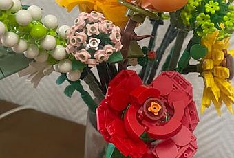 En este jarrón veis los tres ramos de flores hechos con bloques, bueno, mini bloques, estos no son compatibles con Lego puesto que son algo más pequeños.