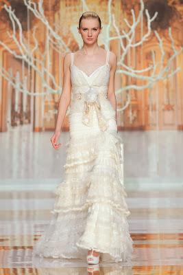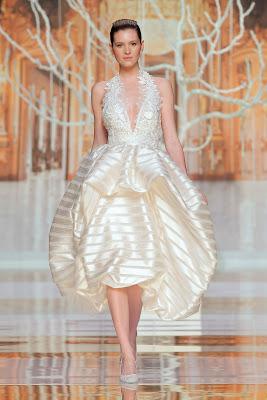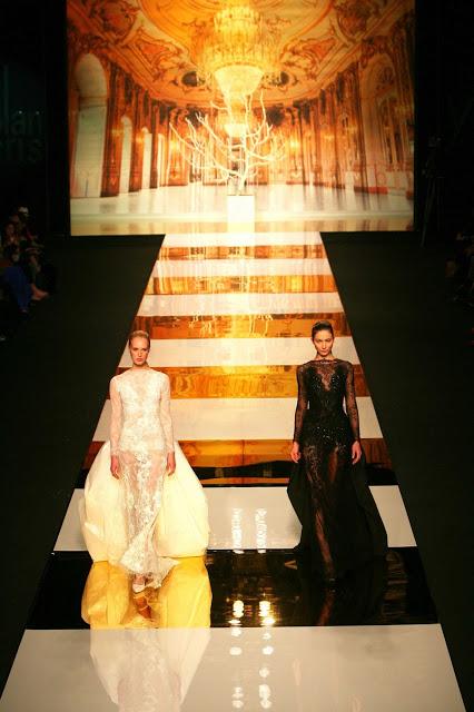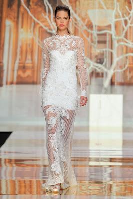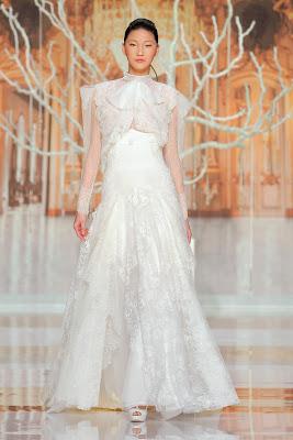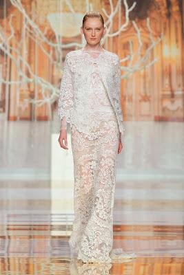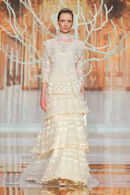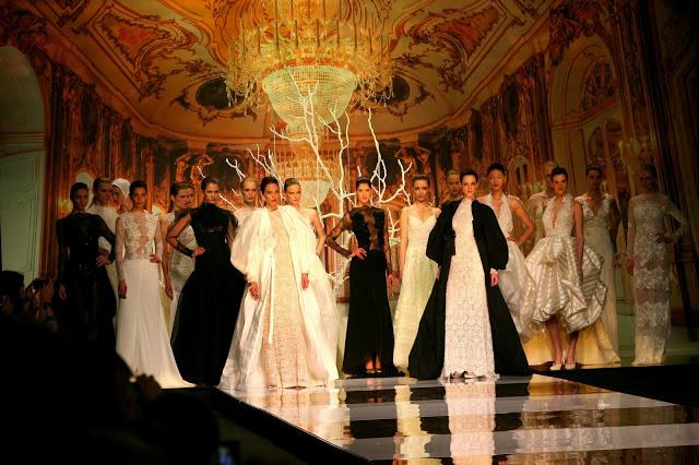 Os puedo decir que el desfile fue impresionante y los diseños eran auténticas obras de arte, dignas de ser expuestas en un museo. Este año nos han sorprendido gracias a la contraposición del blanco y del negro que otorga la luz y la sombra de su colección más cañera y transparente. Entre los vestidos podemos distinguir entre cinco líneas:
