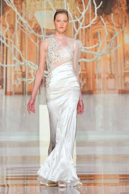 1. Glint Couture: La sofisticación extrema y el brillo evocan a las Divas de los años 30. Siluetas femeninas definidas con tejidos como el satén de seda se completan con pedrería fina, perlas y aplicaciones extremadas.