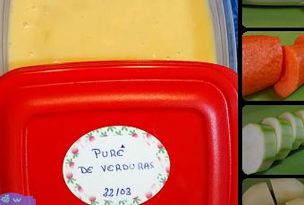 Hice un Puré de Verduras fácil y barato, con puerro, calabacín, patata y zanahoria (Sofreír, salpimentar, cubrir casi entera la verdura con agua, cocer hasta que esté blanda y pasar por la batidora), lo que me ha sobrado lo puse en un recipiente etiquetado para que no se me olvide luego en el congelador cuánto tiempo lleva hecho.