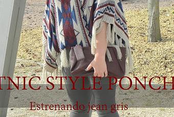 Los he combinado para la ocasión con un poncho étnico, tan de moda esta temporada, en color burgundy y que junto con el gris hace una combinación muy divertida