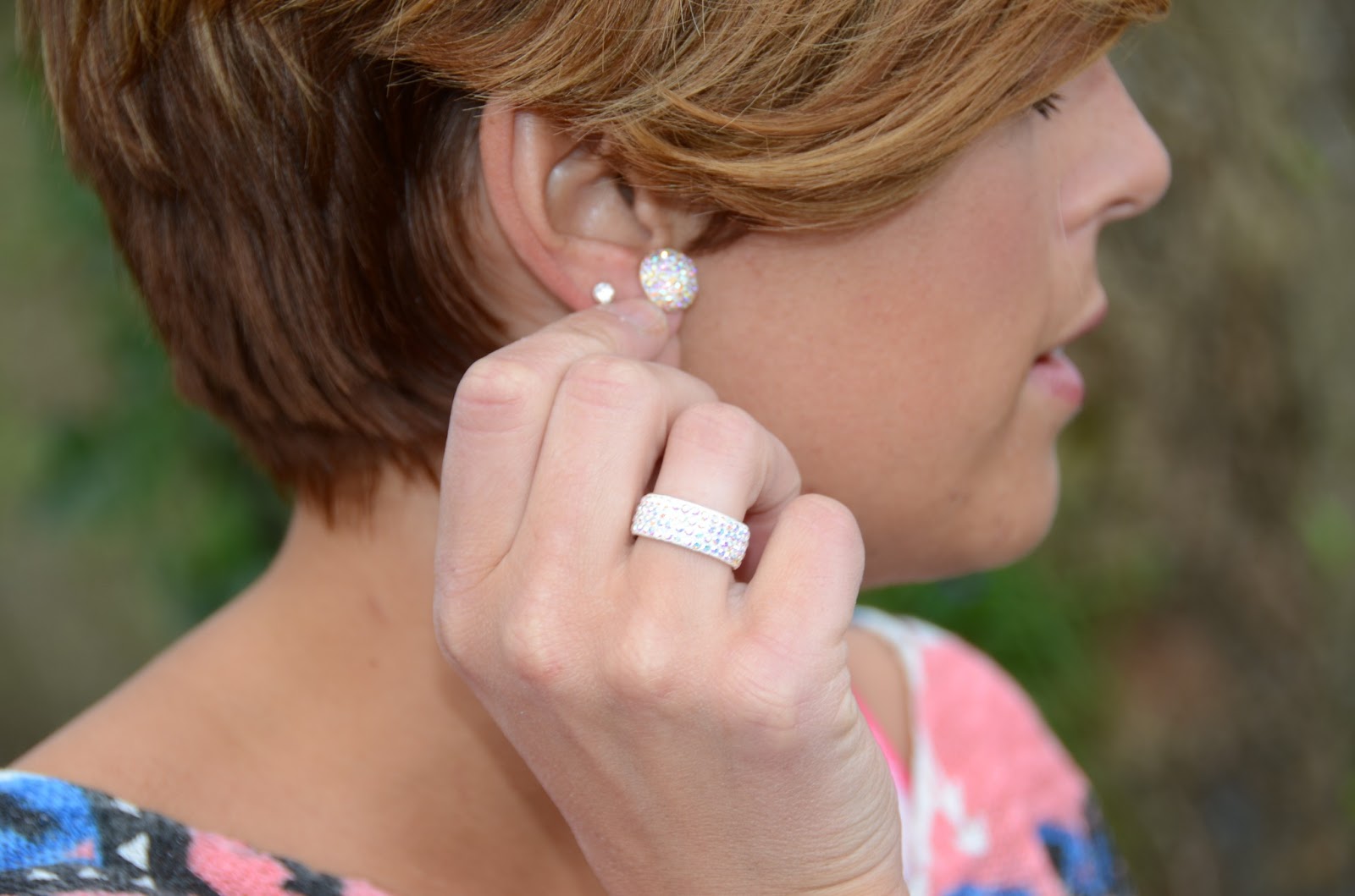 Los comples sencillos, alianza de Swarovski al agua y las chinchetas haciendo juego para dar un poco de brillo al día..