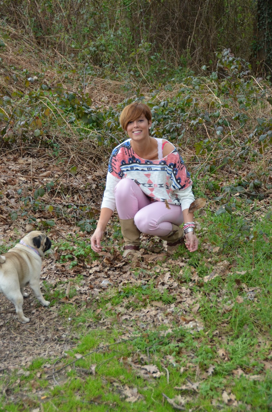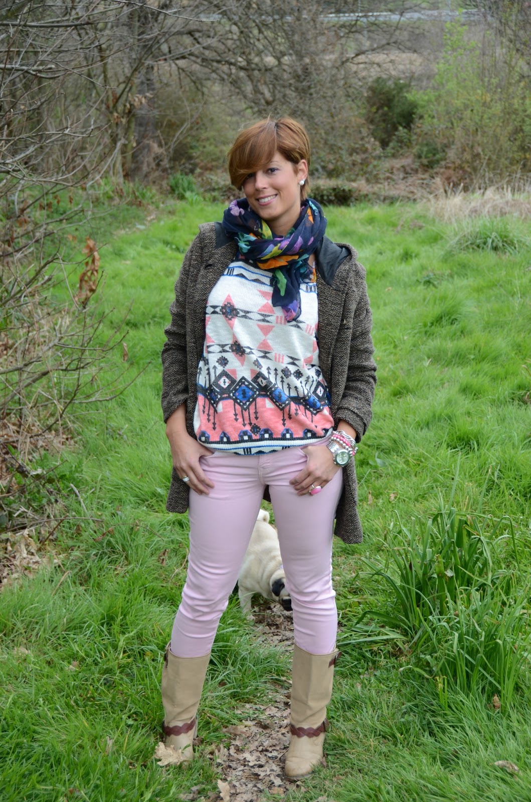 Con el pensamiento pre-primavera y las ganas de lucir los tonos pasteles, escogi el jersey etnico con los pantalones rosa palo, que parece que nos cansa un poco los jeans.