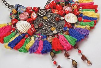 El color y el calor son nuestra biblia a la hora de diseñar. No sabríamos vivir sin mezclarlos, color, calor, materiales y estilos. Como en este particular maxi collar que aúna todo eso y mucho más.ETNICO Y EVOCADOR