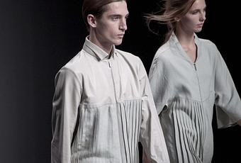 Un casting estupendo con Sebastian Sauve y Clement Chabernaud. Una colección con aires futuristas industriales, un mundo lleno de tribus urbanas salvajes, me recuerda a eso. Mezcla de texturas ya básicas en sus colecciones. Los tonos básicos de la colección son el blanco, negro y gris; una gama reducida y básica, también elegante y minimalista. Uno de los desfiles más esperados y que nunca defraudan.
