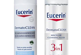 Eucerin® nos ofrece para la limpieza de la piel del rostro, dos productos de su línea DermatoCLEAN, ideales para limpiar la piel en la rutina de cuidado de mañana y noche. Por un lado, el Gel Limpiador Refrescante, que elimina el maquillaje y los restos de suciedad de la piel, manteniendo su nivel de hidratación; y por otro lado, la Solución Micelar Limpiadora 3 en 1, limpiador, tónico y desmaquillante de ojos que proporciona una higiene facial completa.