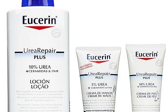 Eucerin® nos ofrece su línea de cuidado corporal UreaRepair Plus, que promete mejorar tanto el cuidado como la hidratación de las pieles más secas con los tres productos que forman parte de esta gama: una Loción Corporal que repone los factores naturales de hidratación de la piel; una Crema de Manos, que proporciona un extra de hidratación tras cada aplicación; y una Crema de Pies, que hidrata, suaviza y regenera la piel de los pies muy secos y agrietados.