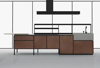 De la firma Minacciolo nos quedamos con esta gran isla de acero corten -apta para exteriores- con tiradores en aspa y aires retro, que la marca italiana presentó de forma espectacular bajo un torrente de lluvia continua en su stand.