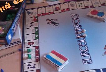 Ya hacía unas semanas que no lo sacábamos, así que el Eurosuperpoly fue sin duda el rey de la tarde. Es el monopoly de toda la vida pero con euros. Mesa abierta, tablero preparado, banca colocada, tarjetas en su sitio… y una buena tarde de repaso y aprendizaje garantizada.