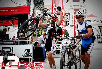 Increíble la experiencia de la EUSKADIextrem.Una organización espectacular, y un recorrido precioso.Zunbeltz y Mikel se embarcaron en la última edición de la Euskadiextrem, una aventura de dos etapas, la primera de 108km (Bilbao-Vitoria) y la segunda de 75km (Vitoria-Vitoria).Estos locos de la BTT comenzaban a las 9 de la mañana del sábado, por delante muchas horas de pedaleo y de aventurillas.Pese a que existen tramos de carretera y de pisteo facilón, los descensos en sendero serpenteante y los pasos por hayedos, compensan y de qué manera los tramos de asfalto.Mikel y Zunbeltz salieron con la intención de disfrutar, sin tiempos, sin presión, con cansancio pero disfrutando de la BTT.Sobre el km 50 y después de unos cuantos repechos en la zona de Orozko, una cuesta de graba suelta fundía las piernas de los biker, por delante aun quedaban 60km y muchas horas pedaleando. Nuestros Bikers seguían sufriendo sobre sus flamantes GIANT , las cuales terminaron dando 0 averías, y es que con una buena montura las garantías son otras.Tras mucho pedalear, nuestros Mindundis soñaban con la idea de llegar y descansar, pero lo raro era que aun no habían cometido una “mindundada”……tiempo al tiempo….Faltaban apenas 20 kilómetros cuando se toparon con dos bikers con problemas, no se lo pensaron dos veces y pararon a ayudar a unos compañeros de aventura. Una ruptura de cadena. Zunbeltz se puso en marcha troncha cadenas en mano para el disfrute de Mikel. Los dos chicos del www.cincuentaonce.com no sabían a quien le habían dejado su bici! Con la bici boca abajo, Zunbeltz no atinaba a enhebrar la cadena por su sitio y tras dos puestas y sueltas de cadena a la 3ª lo consiguió, Mikel mientras tanto tiraba de abdominal (partiéndose la caja) y repitiendo….”no lo veo…no lo veo….jajajajajaj”Tras este pequeño contratiempo cerebral de Zunbeltz, los cuatro emprendieron la marcha cruzando juntos la META y como suele pasar en estas aventurillas, sellando una amistad bicicletera. 8 horas 10 minutos de etapa interminable, y de disfrute inmejorable.La segunda Etapa despertaba con un perfil menos sinuoso, algo que agradecerían los bikers, tan solo dos duras subidas al final y entre medias unos cuantos repechones.