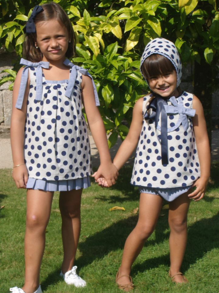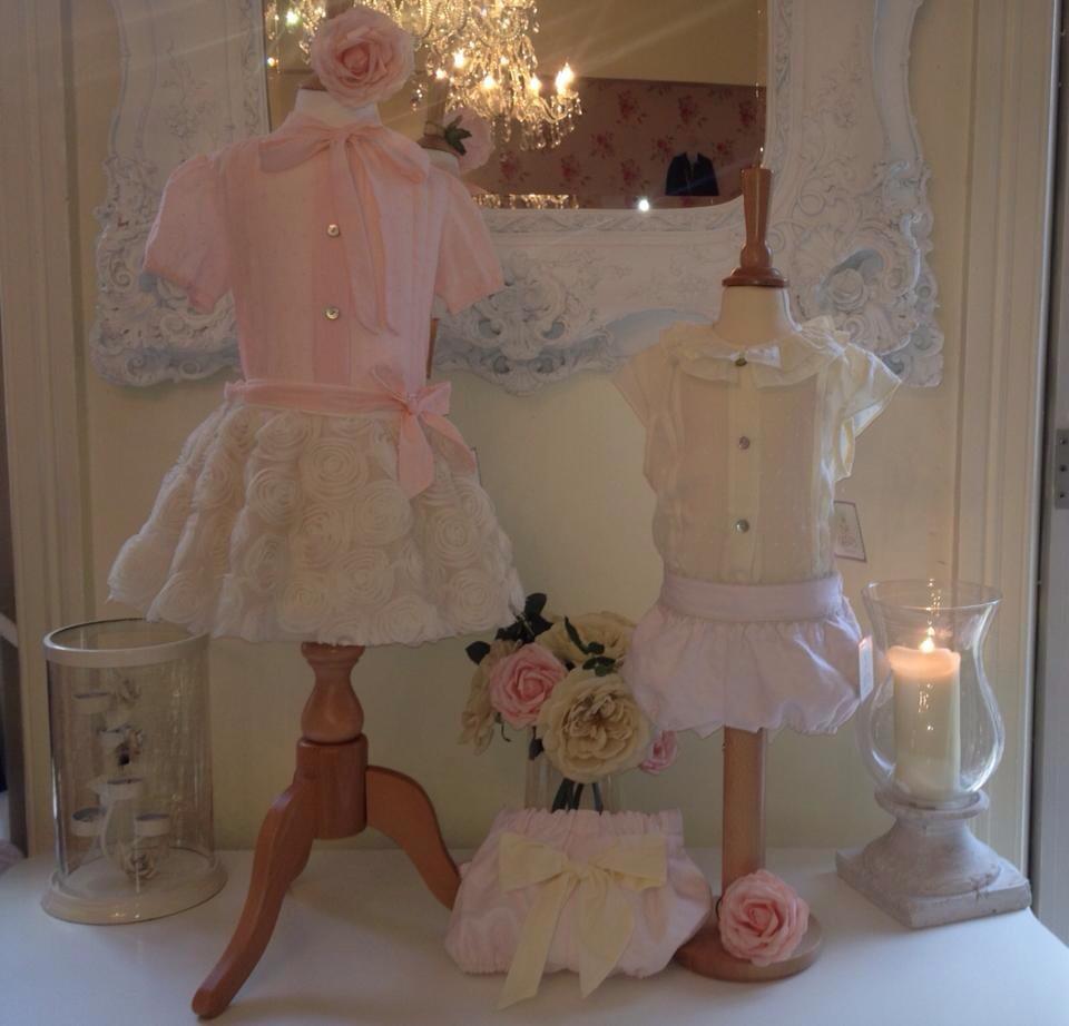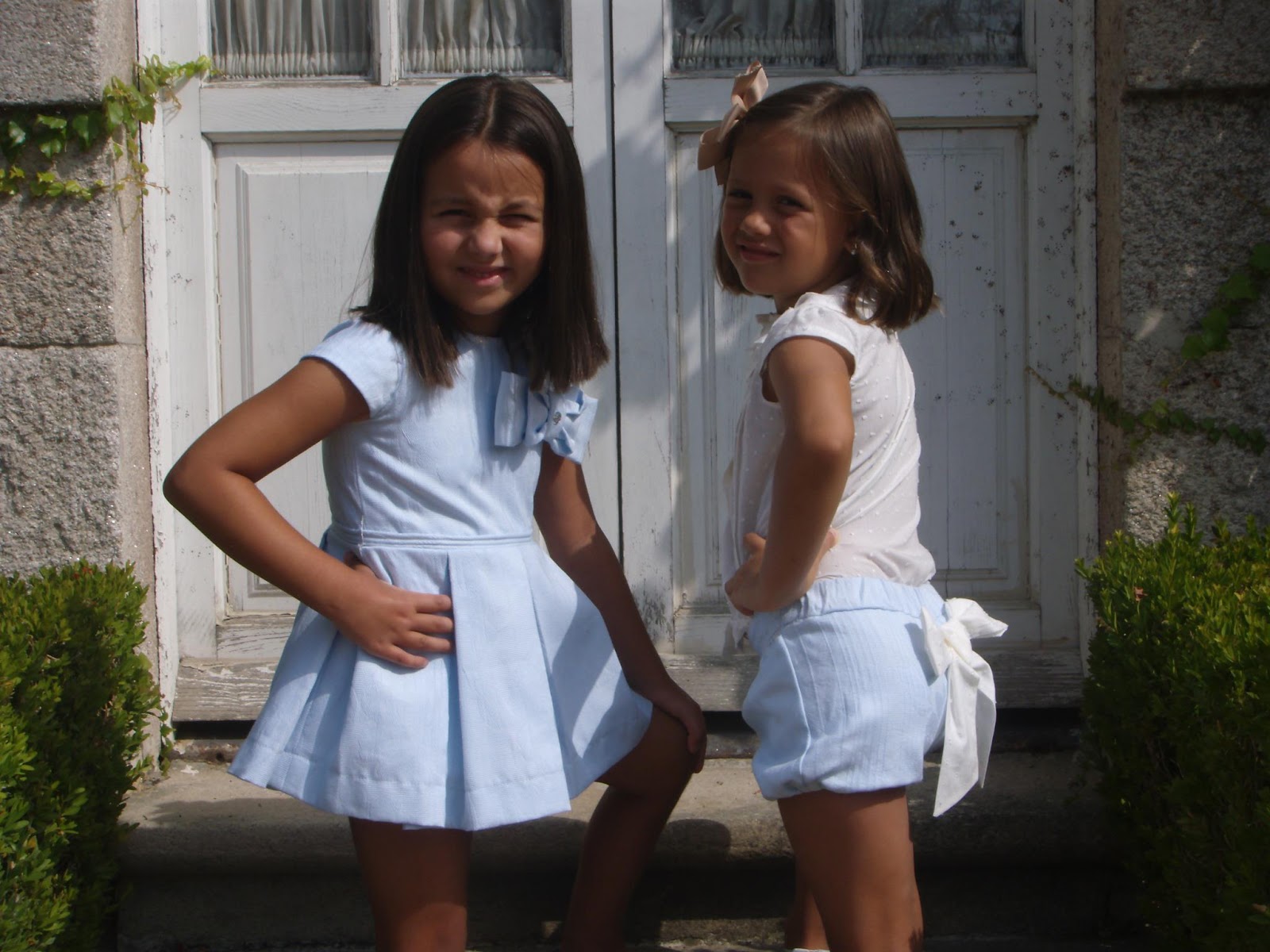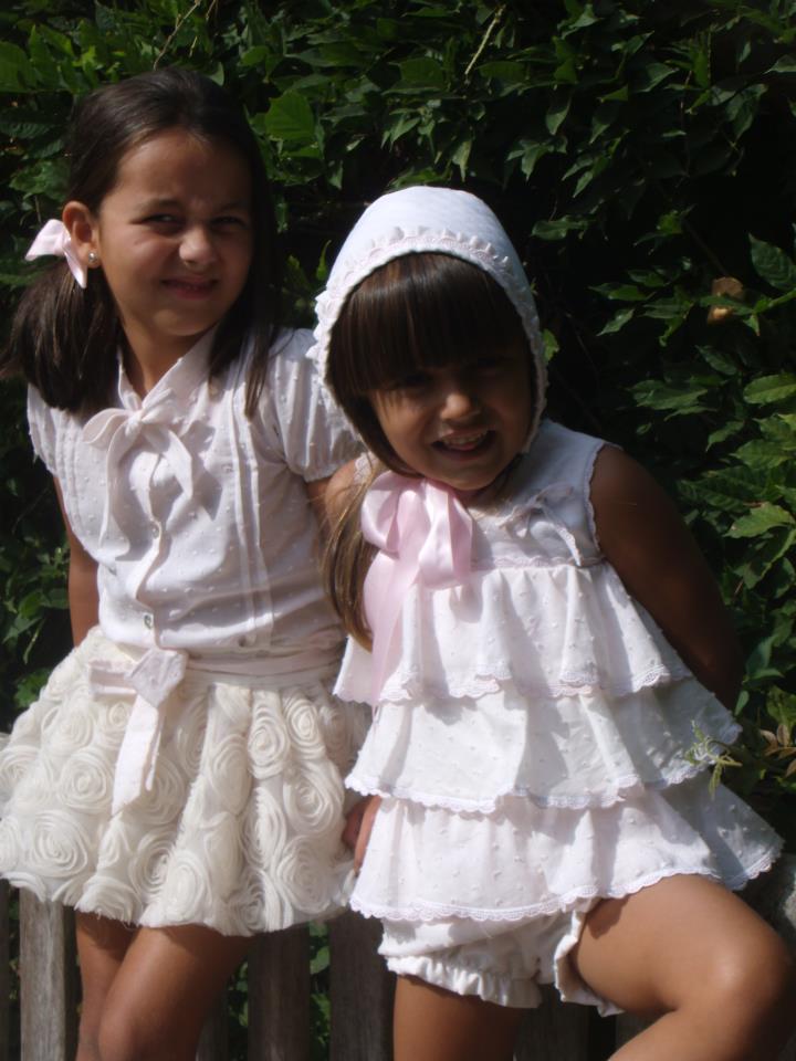 Camisa y falda con rosetones preciosas! Bombacho con lazo detrás y camisa: una pasada!!!! En la foto de abajo lo tenéis en azul. A que es una monería!!