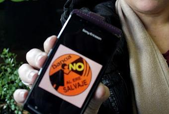 Eva nos enseña su ciberpegata contra el ERE en una foto de Fran Lorente.