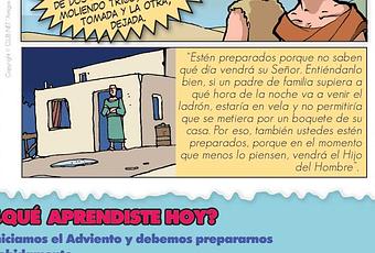 Si no puedes ver la imagen da click aquíEvangelio Dominical:  28 de noviembre del 2010 (Primer Domingo de Adviento)IMPRIME ESTE COMIC EN BLANCO Y NEGRO ¡Y COLORÉALO! HAZ CLIC AQUÍ