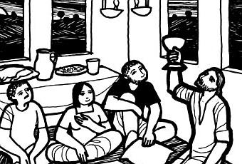 El primer día de los panes azimos, cuando se sacrificaba el cordero pascual, le preguntaron a Jesús sus discípulos : "¿Dónde quieres que vayamos a prepararte la cena de Pascua? El les dijo a dos de ellos: "Vayan a la ciudad. Encontrarán un hombre que lleva un cántaro de agua; síganlo y díganle al dueño de la casa donde entre: "El Maestro manda a preguntar: ¿Dónde está la habitación en que voy a comer la Pascua con mis discípulos? Y él les enseñará una sala en el segundo piso, arreglada con divanes. Prepárennos allí la cena". Los discípulos se fueron, llegaron a la ciudad, encontraron lo que Jesús les había dicho y prepararon la cena de Pascua. Mientras cenaban, Jesús tomó un pan, pronunció la bendición, lo partió y lo dio a sus discípulos diciendo: "Tomen: esto es mi cuerpo" Y tomando en sus manos una copa de vino, pronunció la acción de gracias, se la dio, todos bebieron y les dijo: "Esta es mi sangre, sangre de la alianza, que se derrama por todos. Yo les aseguro que no volveré a beber del fruto de la vid hasta el día en que beba el vino nuevo en el reino de Dios". Después de cantar el himno, salieron hacia el monte de los Olivos.