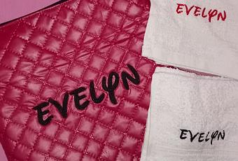 Además, le bordé el nombre en dos toallitas pequeñas que usa para asearse tras la clase de E.F., por supuesto, en colores coordinados, negro y rojo.
