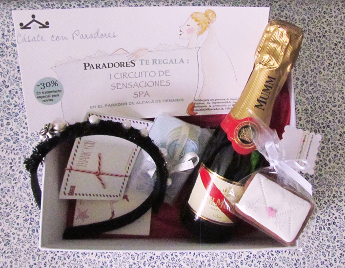 Son ideas que te pueden servir a la hora de organizar tu boda o para ayudarle a alguna amiga que esté a punto de casarse! En la presentación del otro día descubrimos el contenido de la primera cajita de My bodabox. Un tocado de Mimoki, Champagne Mumm, un circuito en Paradores, una cookie de Singlutentaciones, Notas de agradecimiento de Cayetana Soroa y jabón y bálsamo labial de Olivia Soaps fueron las empresas que llenaron de detalles el interior.