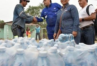 Pobladores de la comunidad San Martín de Porres recibieron alimentos, medicamentos, herramientas, mientras que los brigadistas que luchan contra el fuego en la zona les entregaron equipos para reforzar sus labores.