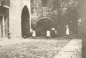 La puerta del claustro nos pone en la Rúa Mayor; años hace tenía esta calle fisonomía original y propia; pegado a los restos que aún subsisten del edificio colegial, se mostraba un casón antiguo, obra de nobles líneas, apellidado palacio; su edad, dos siglos, años más o menos; mis coetáneos recuerdan sus pesados cornisones, las macizas repisas cónicas de sus balcones semicirculares, el verdín tornasolado que marcaba a lo largo de la fachada las filtraciones de la lluvia y los penachos de yerba apoderados de sus impostas, donde chillaban escondidos los gorriones voraces.