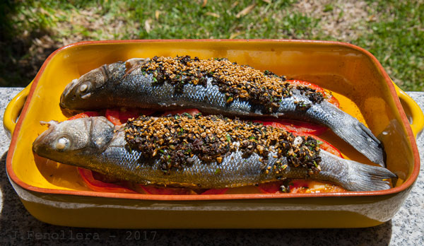 Diría que las lubinas me miran aburridas… parece que me piden algo más que “a la sal” o “a la espalda”, que sin desmerecer ninguna, están ya muy vistas o, hablando con propiedad, muy saboreadas.