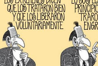 Notable cartoon del día de hoy de Heduardo en Perú 21, sobre la reciente liberación de los rehenes que estuvieron a manos de una banda criminal que se reputa ser del Partido Comunista y que intentó cobrar 10 millones de dólares para liberarlos, los secuestrados una vez libres sorprendieron a los medios recriminándolos por ponerlos en peligro dando informaciones sobre su situación y asegurando que fueron muy bien tratados.Heduardo es un notable humorista gráfico, capaz de editorializar solo en un par de viñetas lo que un periódico se tardaría en explicar en cuatro páginas.