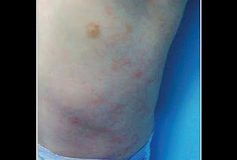 ¡Qué nombre tan raro!. No conocía esta enfermedad pero después de haber visto una no se me olvidará jamás y, quizás, algún hijo suyo la haya padecido sin saber lo que tenía.El exantema latero-torácico unilateral, conocido también como exantema asimétrico periflexural de la infancia, es una erupción eritemato papulosa, con picor y de etiología desconocida aunque parece tener un fondo viral e inmunológico. No se sabe si es frecuente o no. Afecta a niños entre 4 a 39 meses (2 años de promedio) con preferencia en invierno y primavera. Pueden tener síntomas previos como febricula, rinitis y diarrea. La erupción es caracteristica con salida en un lado del cuerpo, cerca de la axila que se extiende a tronco, brazo y muslo del mismo lado siendo los síntomas más evidentes en 2-3 días. Luego puede extenderse al otro lado y suele desaparecer en 3-4 semanas sin dejar secuelas. No afecta a las mucosas, la cara, palmas y plantas. No requiere tratamiento, excepto que haya picor.