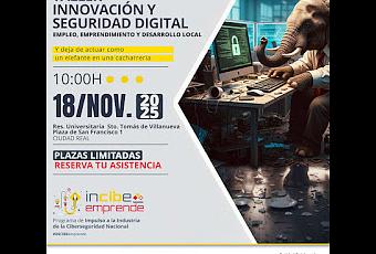 La jornada formativa “Innovación y Seguridad Digital: Empleo, Emprendimiento y Desarrollo Local”, celebrada el pasado 18 de noviembre de 2025 en la Residencia Universitaria Santo Tomás de Villanueva (Ciudad Real), concluyó con un éxito rotundo y una valoración sobresaliente por parte de los asistentes.