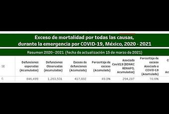 · 417,002 es la cifra del exceso de defunciones acumuladas por todas las causas, durante la emergencia por covid-19, México 2020 - 2021