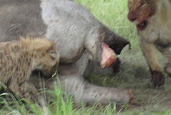 Figura EC-05. Los grandes cazadores de la sabana "falta el perro salvaje" son un caso especial, porque representan casos muy evidentes de competencia, los leones son famosos por matar a las crías de otros depredadores, y las hienas por enfrentarse de manera colectiva de igual a igual con manadas de leonas. A pesar de esto también se evidencia particionamiento y especialización, cuando no adaptaciones de comportamiento. El guepardo se especializa en presas pequeñas y rápidas, tanto que ningún otro depredador las podria cazar en una carrera. El leopardo posee un nicho sobrelapado con leones, hienas y perros, pero a diferencia de los demás, ellos pueden escalar y comer en la punta de los árboles. Tal vez los casos mas complejos son los de leones, hienas y perros, pues su nicho es similar, así como su estrategia de caza colectiva, porque sobreviven las tres especies de manera simultánea, es un misterio, a menos que se asuma que ese sistema ecológico no está en equilibrio y que a largo plazo solo uno de los tres sobreviva.