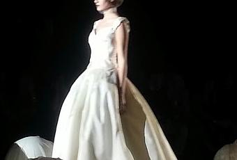 Una pasarela presidida por varios relojes de pared y sembrada de enormes globos blancos cubiertos por velos fue el escenario para la presentación de la colección Silencio, que se dividió en dos líneas: la primera, Tiempo Infinito, mostró vestidos en colores marfil y blanco, marcando la silueta femenina y las curvas y acentuando la figura: