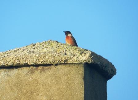 Tarabilla común macho Saxicola torquataIgualmente pudimos ver un buen número de petirrojos o “raitanes” Erithacus rubecula. Durante estos días una gran cantidad de raitanes llegan a nuestra campiña, procedentes de Europa occidental, se distinguen de los nativos por su mancha anaranjada de mayor tamaño y más brillante.
