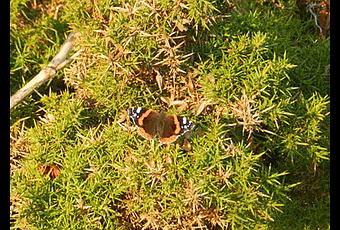 Vanesa Vanessa atalantaUna vez abandonamos la ruta de los turistas y tras coger la senda que bordea el acantilado, efectuamos la primera parada para localizar especies residentes en el matorral.