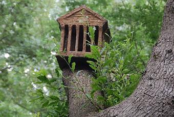 Dejar atrás el asfalto de las ciudades y adentrarte en el silencio de los bosques es siempre un placer, pero además este bosque resulta muy divertido para los niños por la cantidad de figuras que hay diseminadas en él, desde un templo romano para pájaros hasta hadas, dragones y animales de todo tipo. Aprovecho para decir que estas figuras son obra del Grup Fem Camí, que intenta recuperar espacios naturales.