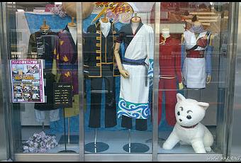 Cosplays de Gintama en el escaparate de una tienda tokyota