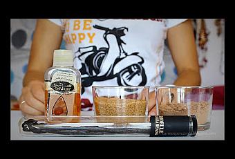 Es tan sencillo como mezclar azúcar moreno, chocolate en polvo, aceite de argán y una vaina de vainilla. Las proporciones depende de cómo os guste la textura del exfoliante, si más granular la proporción de azúcar debe de ser mayor que la de aceite.